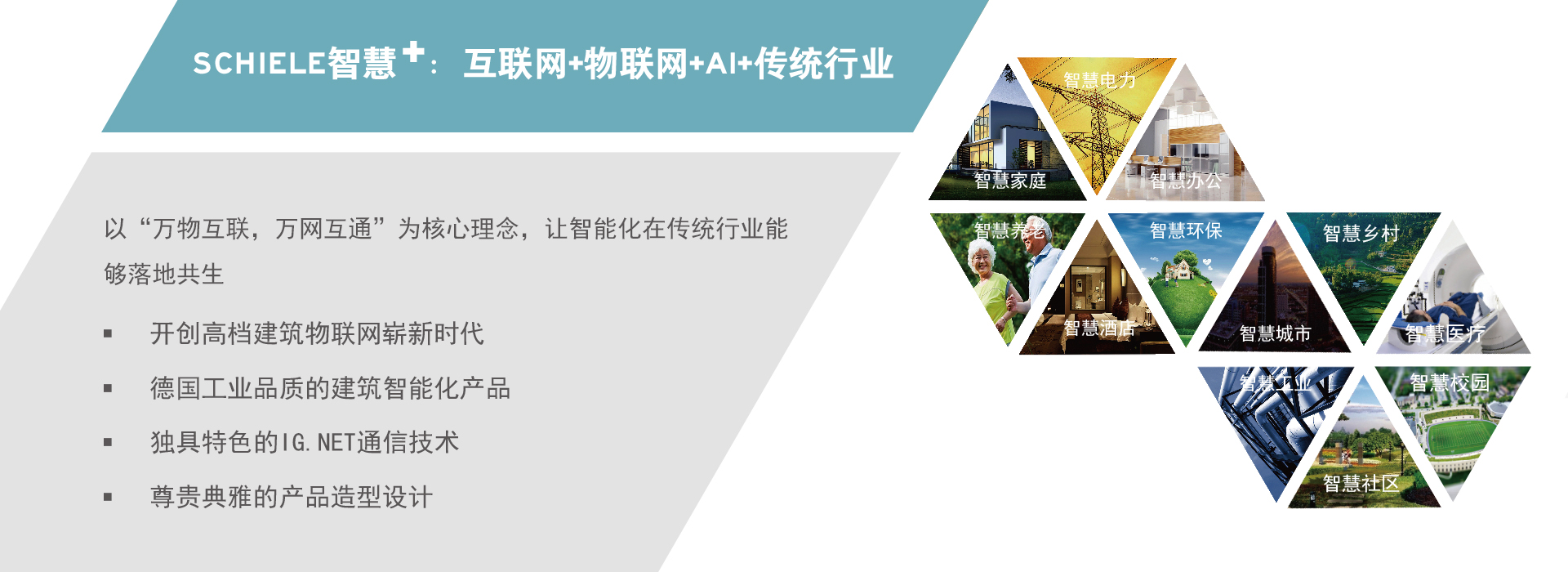 品質的進步,來自于持之以恒的嚴謹和日積月累的創新。SCHIELE智慧系統一體化方案將通過不斷進步的軟硬件產品和技術為世界各地的公寓住宅、酒店、寫字樓、工廠及各類城市公共建筑和公共設施提供更高效優質的服務。
